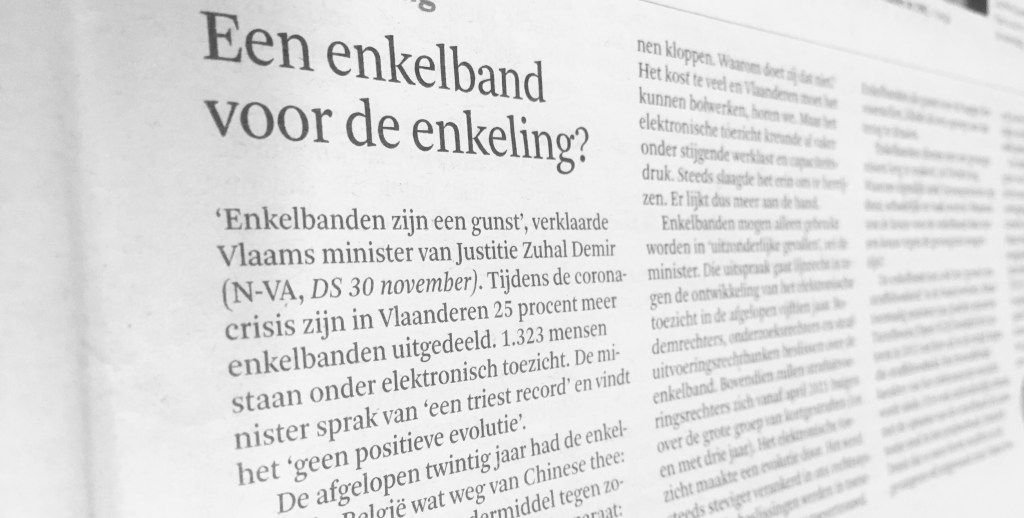 However, when I was preparing a presentation for a talk on EM earlier this month I realized that my reasoning in my op-ed of December 2020 seemed to be the opposite to what I wrote fourteen years earlier. In an op-ed published in December 2006 (in the same newspaper) I reflected on the then rapid increase of EM: this happened because of the automatic release of short term prisoners. This was done to alleviate the pressure on Belgium’s overcrowded prisons. However, this ‘rationalisation’ of EM took place with insufficient attention for selection or follow-up. The title that was placed on top of my op-ed translates as follows: ‘Here you have an ankle bracelet, happy new year!’ (‘Hier is een enkelband, prettige eindejaarsfeesten!’). It captured beautifully some of my worries: EM risked becoming a mere control gadget, devoid of any meaningful human contact inspired by a probation ethos.