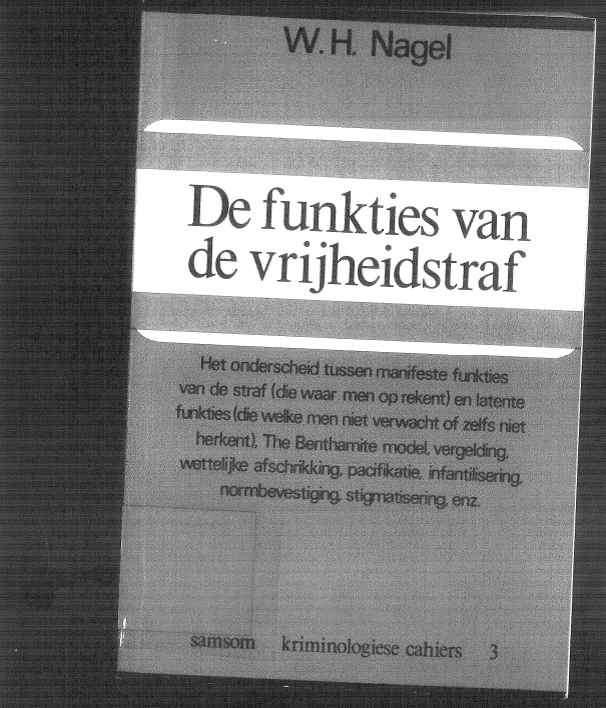 In 1977 the Dutch criminologist Willem Nagel (1910–1983) already asked such questions about the modern prison. In his book De funkties van de vrijheidstraf (which was, unfortunately, never translated into English) Nagel explored 57 different functions of the modern prison. Nagel discussed these functions alphabetically, from ‘Afkeer uitdrukken’ (expressing aversion) to ‘Vorming’ (education). To some of these functions (such as deterrence) he devoted dozens of pages; to other functions only a few pages or just a few lines. This alphabetical listing and this unbalanced treatment of the functions of imprisonment makes reading Nagel’s book a strange and puzzling experience. But perhaps it made his message about the prison even stronger: maybe this reflects how the debate on imprisonment is generally conducted?